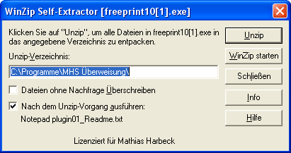 Wichtiger Hinweis für Benutzer von MHS Überweisung 2: Sie können die folgenden Schritte in diesem Programm genauso verwenden, allerdings wird es i.d.R. einfacher und bequemer sein, die integrierte PlugIn-Verwaltung zu verwenden. Sie finden diese im Menü "Hilfe" unter "Im Internet...".